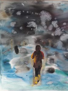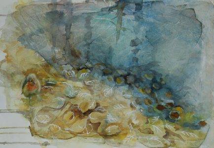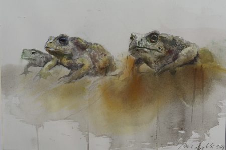 Tässä muutamia tämän hetken tunnelmia kirjasta. Jäätyneet lehdet huurteisen lammen rannalla, rupikonnat liikkeellä, ruskan värit ja ensilumi.