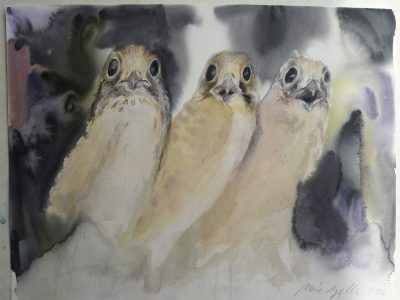 Olisivat lähteneet jo tänään, mutta Lauttasaaren postipalveluista ei löytynyt pahviputkiloa, johon akvarelli olisi ollut näppärintä ja halvinta pakata (tämän opin viimeksi kun postissa pähkäilin näitä postitusmahdollisuuksia). On jännä ajatella, millaiselle seinälle ja minkälaiseen kotiin ne lopulta päätyvät- ketä tuijottelevat tummilla silmillään.