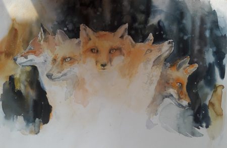 Kettu- ja mäyräakvarellit etenivät viikonloppuna. Ovat nyt tämmöisessä vaiheessa. Homma jatkuu.