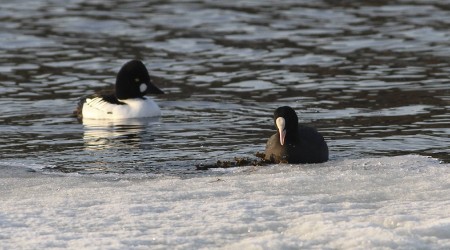 Nokikanatkin uivat melko lähelle laituria, tukkasotkat pysyttelivät vähän kauempana.