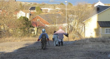 Aamupäivällä tutkimme nuorimman pojan kanssa hienoja kiviä ja laitoimme niitä veteen. Keskimmäinen teki muurahaisille linnoitusta. Tyttö tuli juosten koulusta ja huusi: nyt on kiire, äkkiä eväät. Mikä riemu ja innostus, ja miten liikuttava näky kun tyttö lähti sijaisopen ja toisen oppilaan kanssa retkeilemään reppu selässä keikkuen.