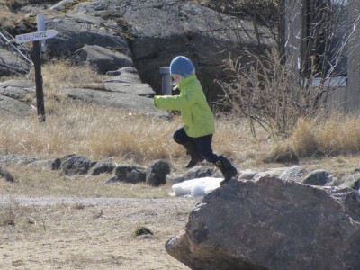 Pelasimme fudista ja lennätimme keltavarjoista laskuvarjomiestä kiven päältä.