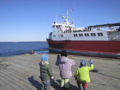 Saaresta lähti taas paljon väkeä Eivorilla yhdentoista aikaan. Kävimme vilkuttamassa lähtijöille. Iltapäivällä kotioven edessä vastaan tuli matkalla oleva rantakäärme. Ensimmäiset käärmeet ovat ilmeisesti jo lähteneet liikkeelle kevätkasoista, ja nyt niitä voi nähdä uusillakin alueilla.
