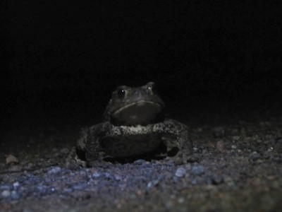 Iltakymmeneltä lasten nukahdettua lähdin pimeäretkelle saareen etsimään rupikonnia. Tällä kertaa olin varustautunut otsalampulla, koska katulamput eivät palaneet. Ilta oli pimeä, taivas pilvessä eikä kuuta näkynyt. Kävelin helikopterikentän tuntumaan ja vähän eteenpäin eteläkärkeä kohti. Majakan valot näkyivät selkeinä kiiloina, jotka viuhahtivat tasaisesti kahden sarjoissa pääni yli. Kauempana merellä kulkeville laivoille ne näkyvät valon välähdyksinä. Meren pauhu kuului kovana lähes koko matkan, ja ilma oli sen verran kylmä, että otsalampun valossa näkyi miten hengitys höyrysi. Matkalla vastaan tuli seitsemän rupikonnaa, ensimmäinen heti hotellin päärakennuksen edessä. Ne ovat hassun näköisiä mönkiessään varjossa äänettömästi eteenpäin. Nämä isot rupikonnat eivät pompi, vaan kävelevät, ja niiden vatsa näyttää viistävän maata. Yleensä ne pysähtyvät liikkumattomiksi, kun otsalampun valokiila osuu niihin, mutta jatkavat sitten kylmänkankeaa menoaan.