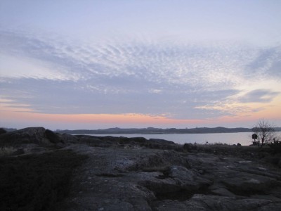 Juhakin heräsi ja huomasi pian, että tietokone oli sammunut, vaikka oli jätetty yöksi raksuttamaan kuvien siirtoa varten. Aamupaniikkia oli ilmassa, kun ulkoinen kovalevy verbatim ei pihahtanutkaan. Myöhemmin selvisi, että ilmeisesti on tapahtunut seuraavaa. Olimme asentaneet koneen tekemään yöllä varmuuskopioita kuvista ulkoiselle kovalevylle. Yöllä saaren yli lipui ukkosrintama ja sen seurauksena tuli sähkökatkos. Ulkoisen kovalevyn lisäksi hajosi yksi tietokoneen USB-porteista ja ilmeisesti viimeisen päivän kuvat. Onneksi Juha oli tehnyt toisenkin varmuuskopion aiemmista kuvistamme, ja onneksi saatiin tallennettua sinne myös nämä täällä kuvatut. Mantereelta on tulossa toinen kovalevy.