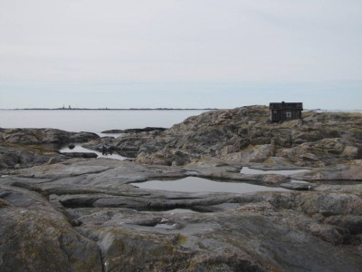 Rantauduimme huippuhienolle saarelle. Saarella on pieni kalastajamökki, mutta muuten se on lähinnä komean muotoista kalliota, jota peittää oranssinkeltainen jäkälä. Lähiluodolla köllötteli hylje, halli ilmeisesti. Ohi kulkenut suuri rahtilaiva sai sen pulahtamaan mereen, mutta puolen tunnin kuluttua se palasi jälleen samalle luodolle. Kauempana etelässä, aivan kiikareiden hahmotuskyvyn rajalla, näytti olevan paljonkin hylkeitä samalla luodolla.